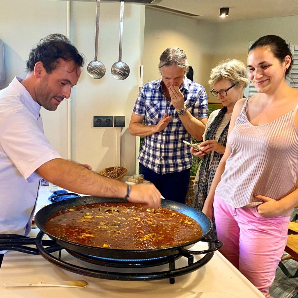 - A live cooking show where our expert chef guides you through the process of making traditional paella.